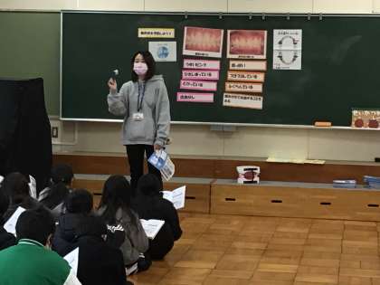 1月10日(金)に身体測定が行われました。「歯肉炎を予防しよう」というテーマで養護教諭に話をしてもらいました。はみがきの仕方やはぶらしは1ヶ月で交換するとよいことを教えてもらいました。「歯のふしぎ」という冊子をもらい、興味深く読んでいました。是非ご家庭でもお読みください。