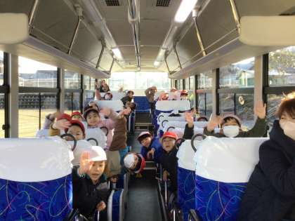 バスに乗って、うれしそうな顔がいっぱいありました。