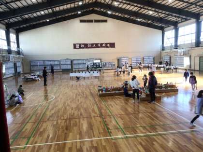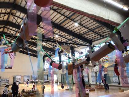 体育館の舞台、壁、フロアーを全部使って展示をしました。
