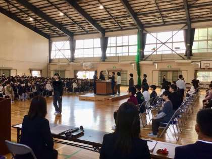 在校生、卒業生、職員で卒業式の予行練習を行いました。