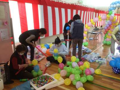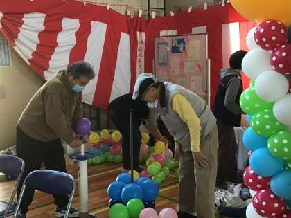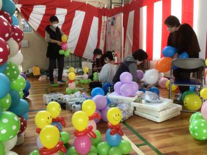 キュート12の皆さんのお力を借りて、バルーンアートで入学式の飾り付けをしました。1年生がわくわくしてくれるとうれしいなと思っています。