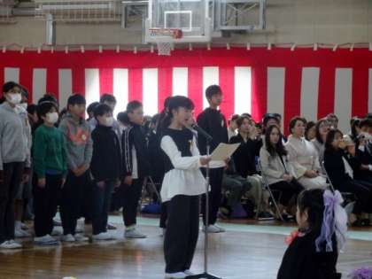 6年生の代表児童から、小清水小学校の楽しいところや自分が心に残ったことの紹介があり、みんなで仲良く過ごしましょうと歓迎の言葉がありました。これからよろしくお願いします。