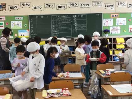 給食の準備も少しづつ慣れてきて、早くなってきました。頼もしいです。