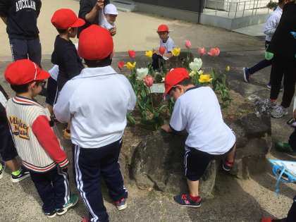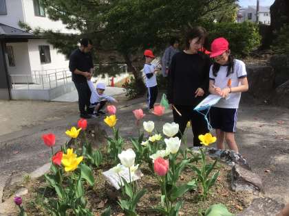 昨年度に冬に思いを込めて植えたチューリップが、ちょうど小清水っ子を待っていたかのように咲きました。たくさんの小清水っ子が見てくれたので、ますますチューリップさん、今咲いてくれてありがとう!という気持ちになりました。