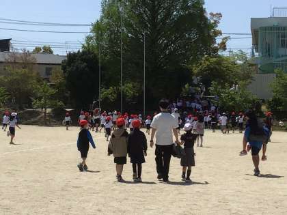 音楽が鳴ると、ちゃんと教室にむかいます。