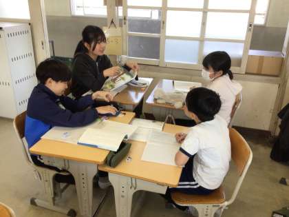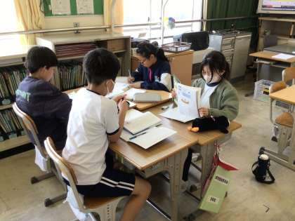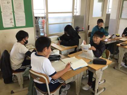 5年生の国語では、人物の心情を音読で伝えるために、「おにぎり石の伝説」というお話を読んでいます。ご家庭でも音読で聞こえてくるのではないでしょうか。4組では伝え合う意識を大切にしようという子ども達の発言から、「音読交流会」と題して取り組んでいます。音読がレベルアップしているか、ぜひチェックしてみてください。