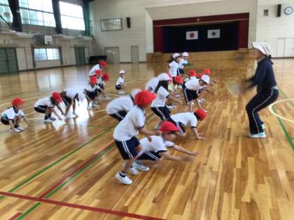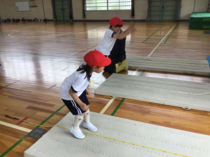 はじめに腕の振り方などの練習をして、本番は、一生懸命に跳びました。