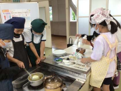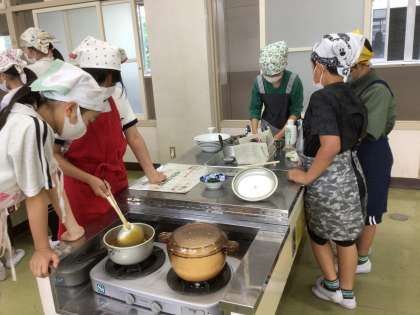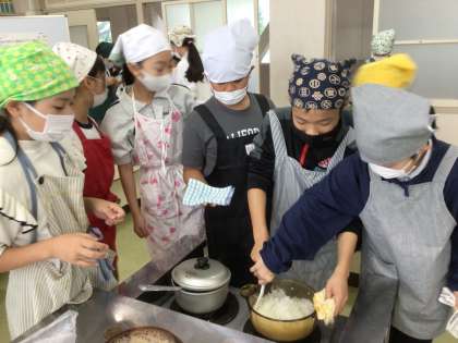 家庭科の時間に、ご飯を炊き、カレーを作りました。