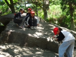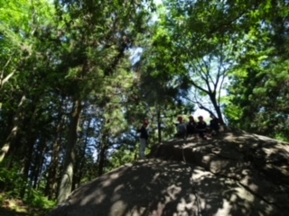 大きな石にローブだけで登る。