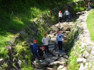 アスレチック先から戻ってきたら、沢で遊んでいる5年生がいました。おやおや?