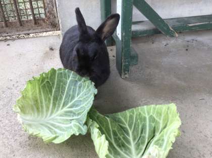 今日は、キャベツが朝食でした。お行儀よく食べますね。いっぱい食べてね。