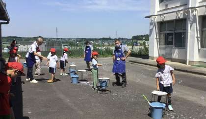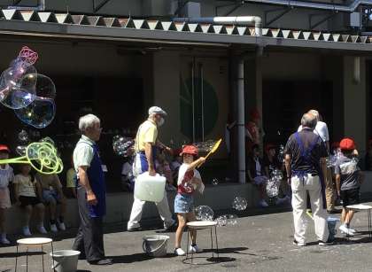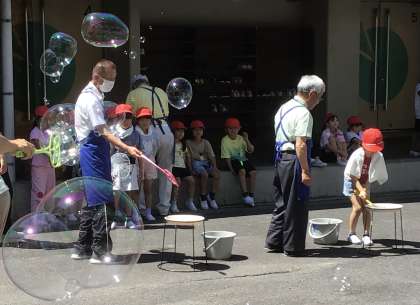 途中でグループをかわってすべてのシャボン玉体験をしました。楽しいね。