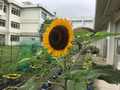 ひまわりも咲きました。今日は、あいにくの梅雨空ですが、暑さに負けずに咲き続けてほしいです。
