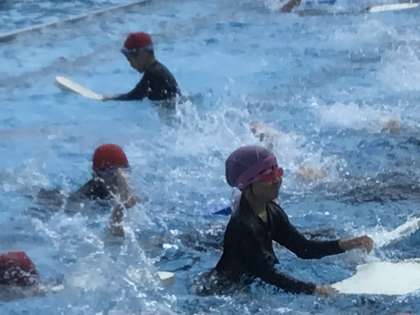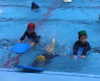 子ども達の動きに合わせて水飛沫が上がるのを見ると、楽しむ気分が伝わってきました。