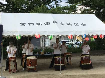 宮新太鼓の皆さんが祭りのスタートを飾っていました。力強いタオこの音が夏の祭りに活気を与えていました。