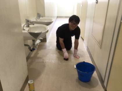 何日かかけてトイレをぴかぴかにみがいていたのです。今日は、最後の床拭きの仕上げだと言っていました。汗をいっぱいかきながら、一生懸命掃除していました。