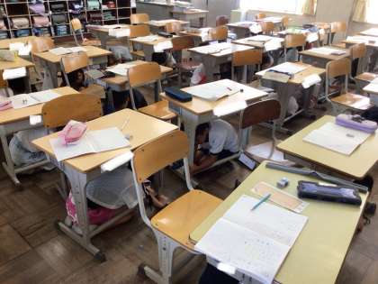 愛知県では、南海トラフ地震等大規模地震発生の際に、県民の皆さんそれぞれがその場に応じて自らの身を守る行動を行えるよう、2013年からシェイクアウト訓練を行っています。