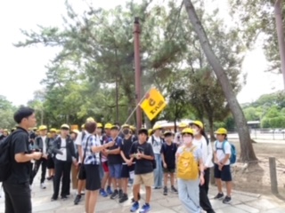 鹿の姿に心動かされながらも、避ける子も多かった気がします。鹿をよけながら、ちゃんと固まって歩きました。