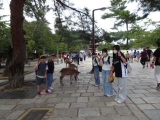 鹿がたくさんいました。鹿煎餅をあげました。怖いと言う子もいましたが、かわいいバンビはにんきでした。
