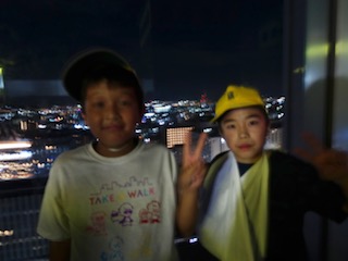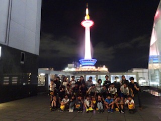 京都駅の上まで登りました。夜景がきれいに見えました。豊田の駅とはちょっと違ったかな。