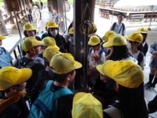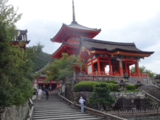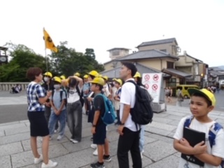 清水寺に到着しました。周りを見てください。とても空いています。らっきーでした。清水寺 弁慶の錫杖 も、みんなで持ち上げる挑戦ができるくらいでした。