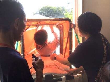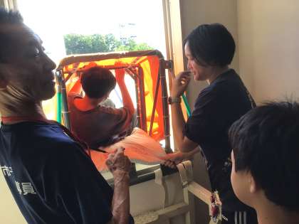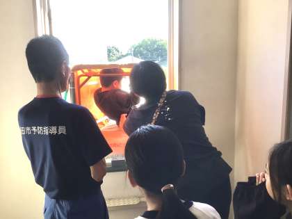 ここが、避難袋の入り口です。すこしななめになっているため、怖いのか、それとも安心なのか?