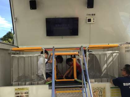震度7まで地震の揺れを体験することができる防サイくんに乗りました。