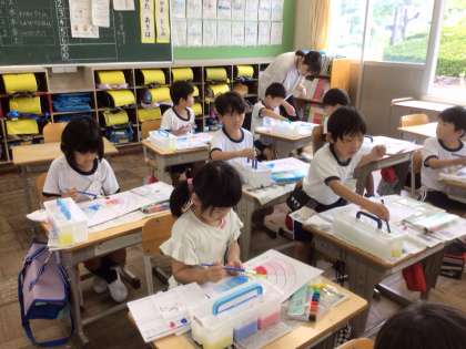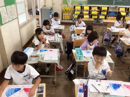 絵の具を使って、画家のように上手に作品を描いているクラスもありました。