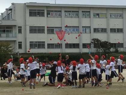 高く上げるつもりでも、なかなか思ったように届かないのが玉入れです。