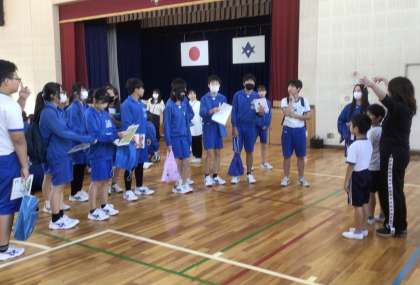 ふだんは、大きくなったなあと感じる1年生ですが、中学生の間に入ると、とてもかわいい1年生になりました。いっぱい関わってくれてありがとうございます。