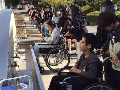 手洗い場でも使ってみました。ふだんとは違う感覚をもったのでは?
