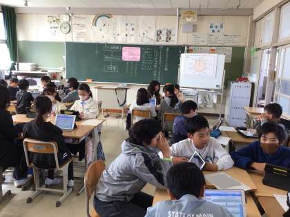 学習用タブレットも授業内で上手に使うと話し合いもスムーズに進んでいきます。