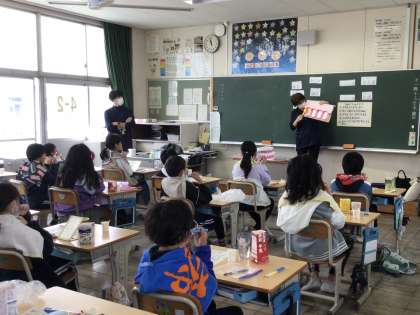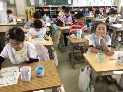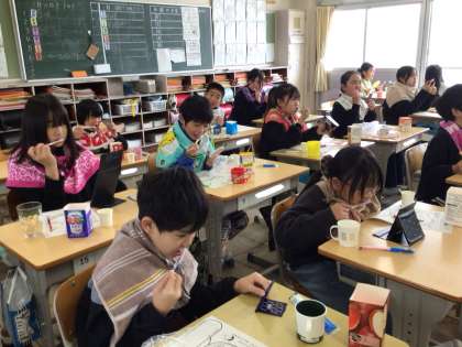 学校歯科医、歯科衛生士による歯科指導が行われました。染め出し液で磨き残しが多い場所を知り、自分に合った歯の磨き方を学びました。