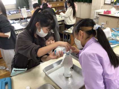 学生さんたちは様々なアイデアから実験をする子どもたちの様子に感心していました。