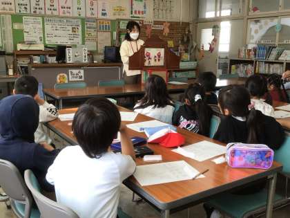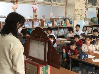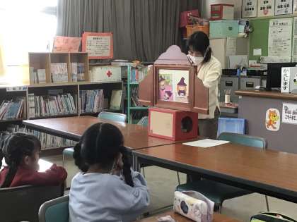 本日,2年生が学校図書館司書さんから高学年図書室の使い方を教わりました。本の棚の並び方や貸出・返却の列など,低学年図書室との違いを紙芝居を通して教わりました。高学年図書室で本を1冊借りることができ,とても嬉しそうでした。高学年向きの本にも興味をもち,様々な種類の本を読んでいけるとよいです。
