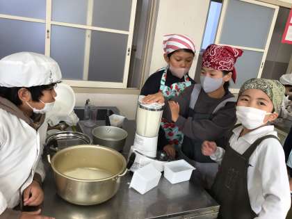 どのクラスも楽しそうに、そして真剣に豆腐を作る姿が見られました。