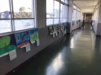 南吉の物語から一人一人が感じた想いを絵に表し、その絵に国語科で学んだ「読む視点」を使ってコメントをつけています。たくさんの作品が展示されていますので、ぜひ、保護者会のときにお立ち寄りください。
