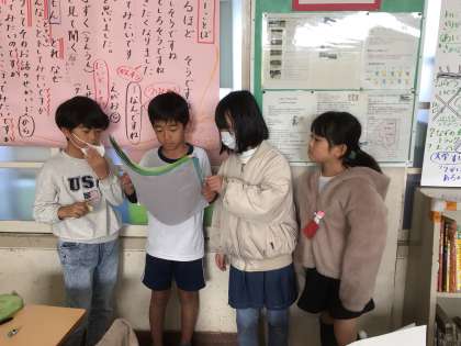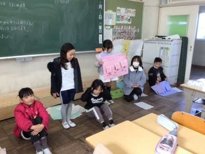 自分たちで見て、聞いて、調べたことを発表するので、みんな自信満々です。1年生の子に上手に伝わるとよいですね。