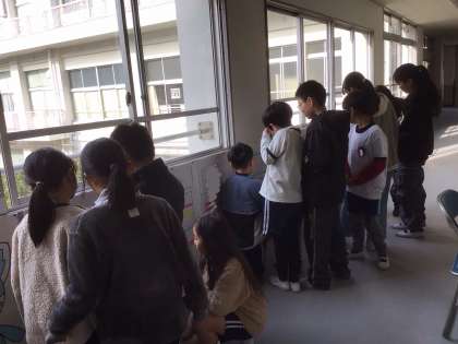 貼ってみると、たくさんの小清水っ子が関心をもって見ていました。