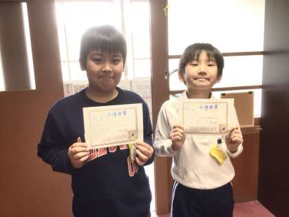 1月20日 学年でいちばんくらいにボランティア活動をがんばっている子と元気なあいさつをしている子の表彰をしました。先生や地域の人からの推薦です。すごい!