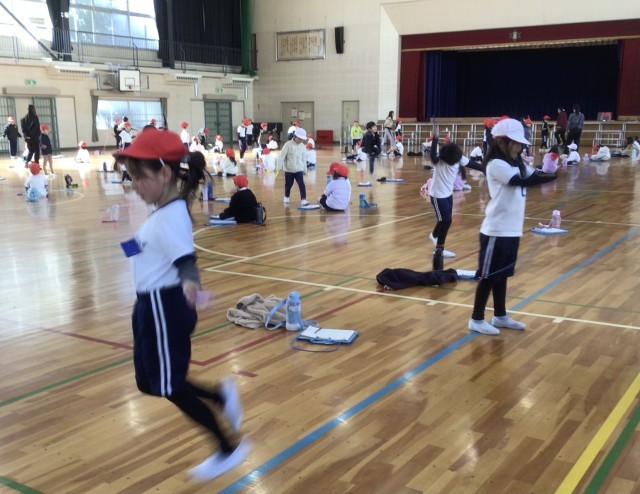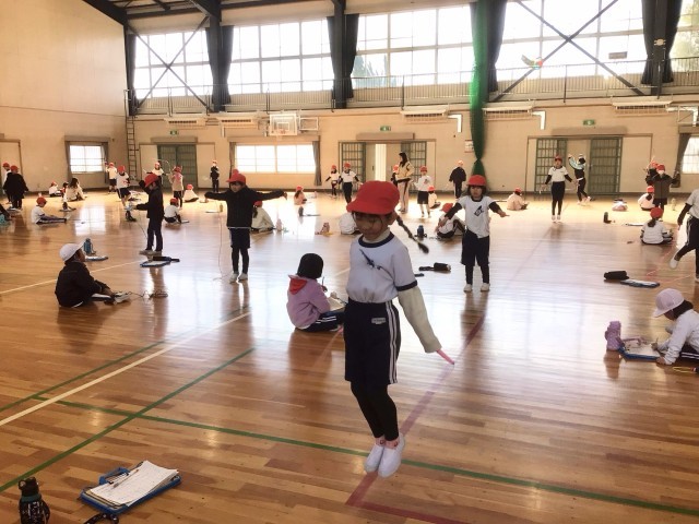 各学年、個人種目と長なわとびの種目に挑戦しています。