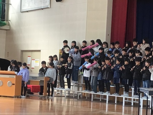 合奏、パネルや歌や呼びかけで伝えました。