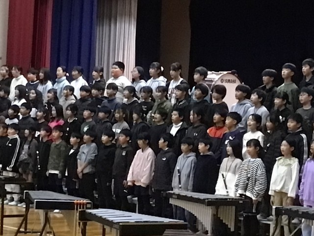 5年生は、会場を真っ暗にしてキャンプのときに行ったトーチトワリングから始まりました。歌に合奏にと学年でまとまった力を見せました。