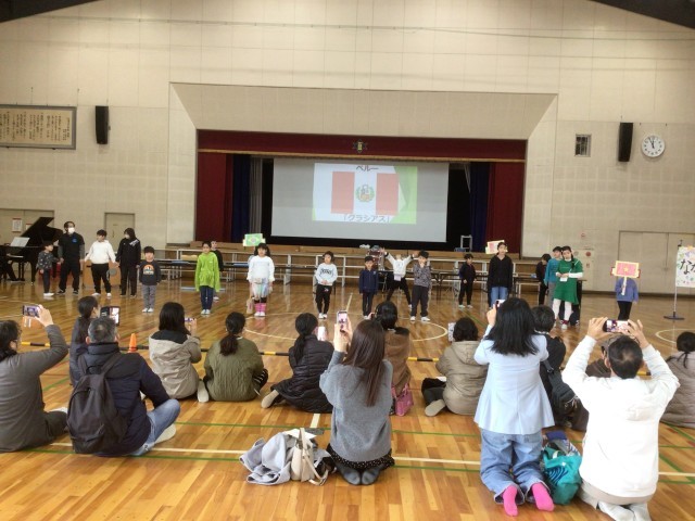 こんにちはと出会いに感謝し、いろいろな国のあいさつで誘う歌から始まり、ダンスを披露しました。