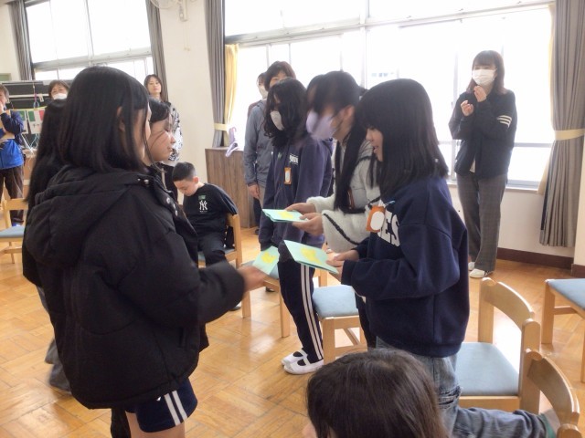 ゲームのあとは、6年生に感謝のカードのプレゼントです。