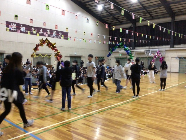 写真ではうまく写っていませんが、かっこよくすてきなトーチでした。カラフルな色がくらい体育館に、花を咲かせたようでした。練習もお疲れ様.