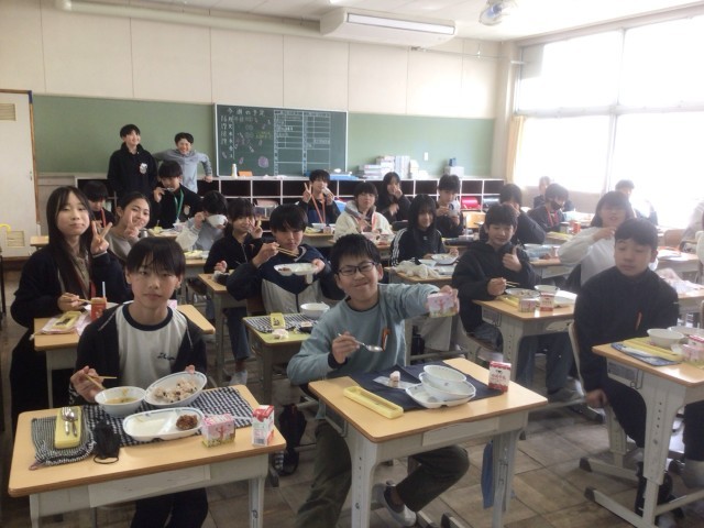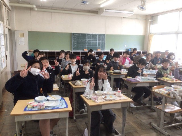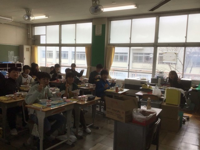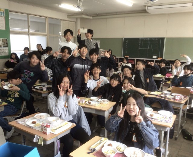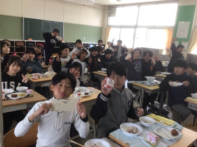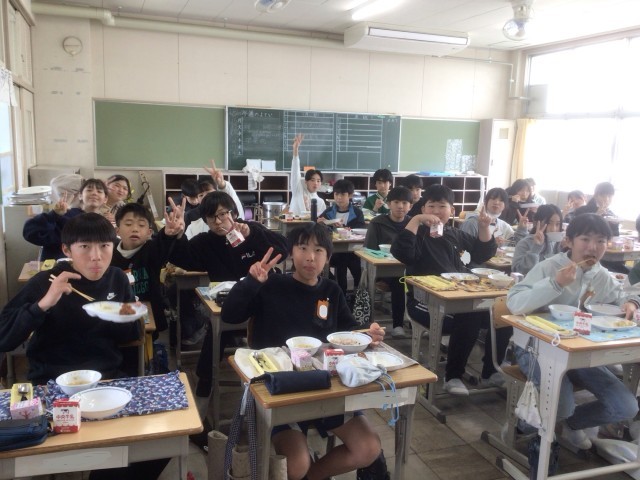 小学校生活最後の給食をクラスの仲間と楽しく食べていました。