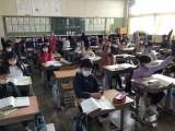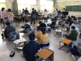 4年生の音楽の授業です。 コロナウイルス感染予防をしながら、木琴の練習をして...
