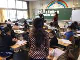 3年生の外国語活動の授業です。 色や形の英語を学んでいます。