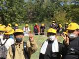鯛石を右足で踏んで進みました。 法隆寺で学級写真を撮りました。 撮ろうとし...
